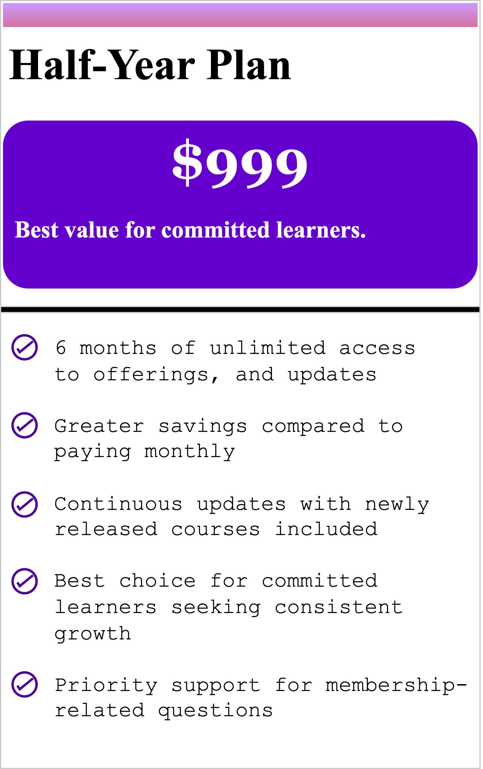 Join membership to explore a full catalog of member-free items. Save time, reduce cost, and enjoy continuous skill growth across every stage of your career.