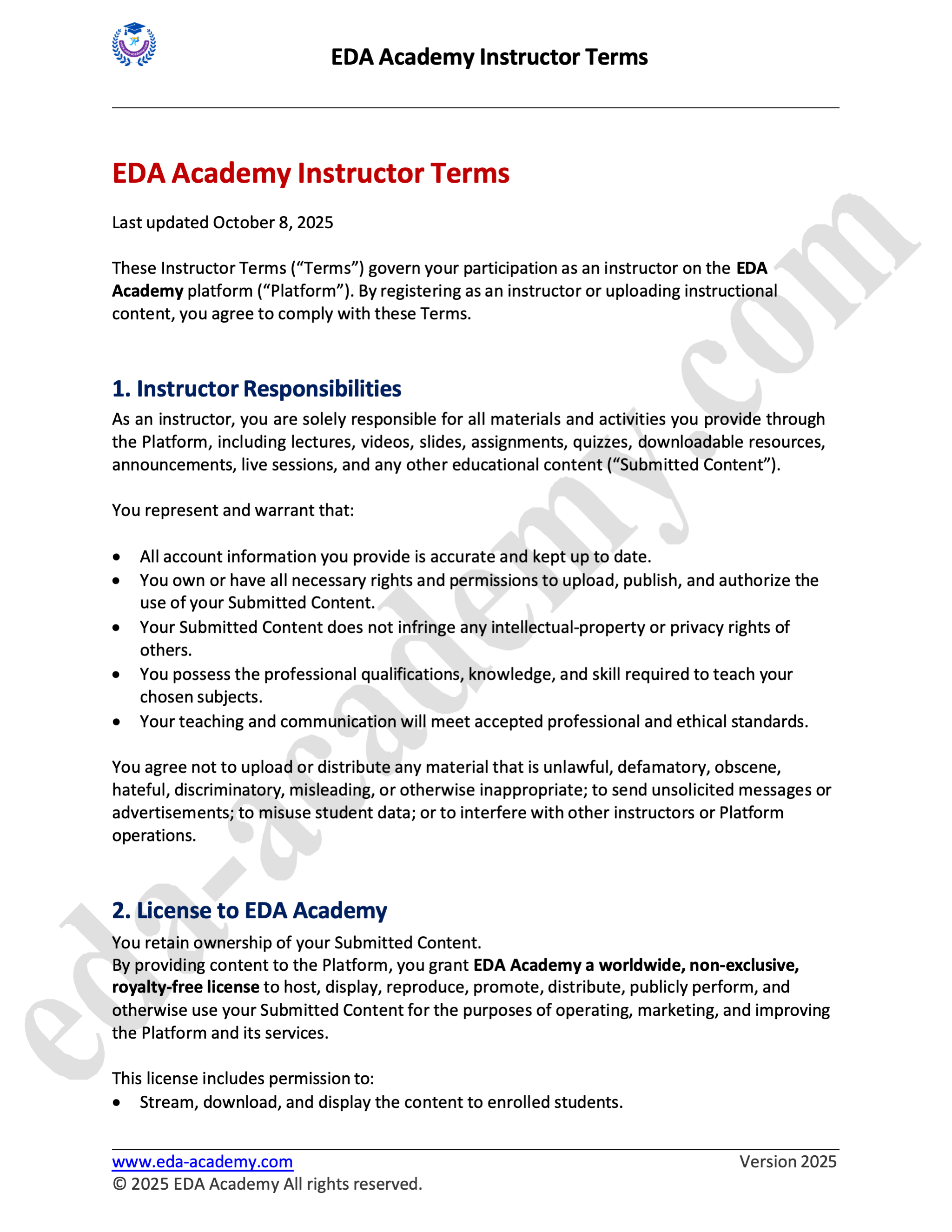 Instructor Terms