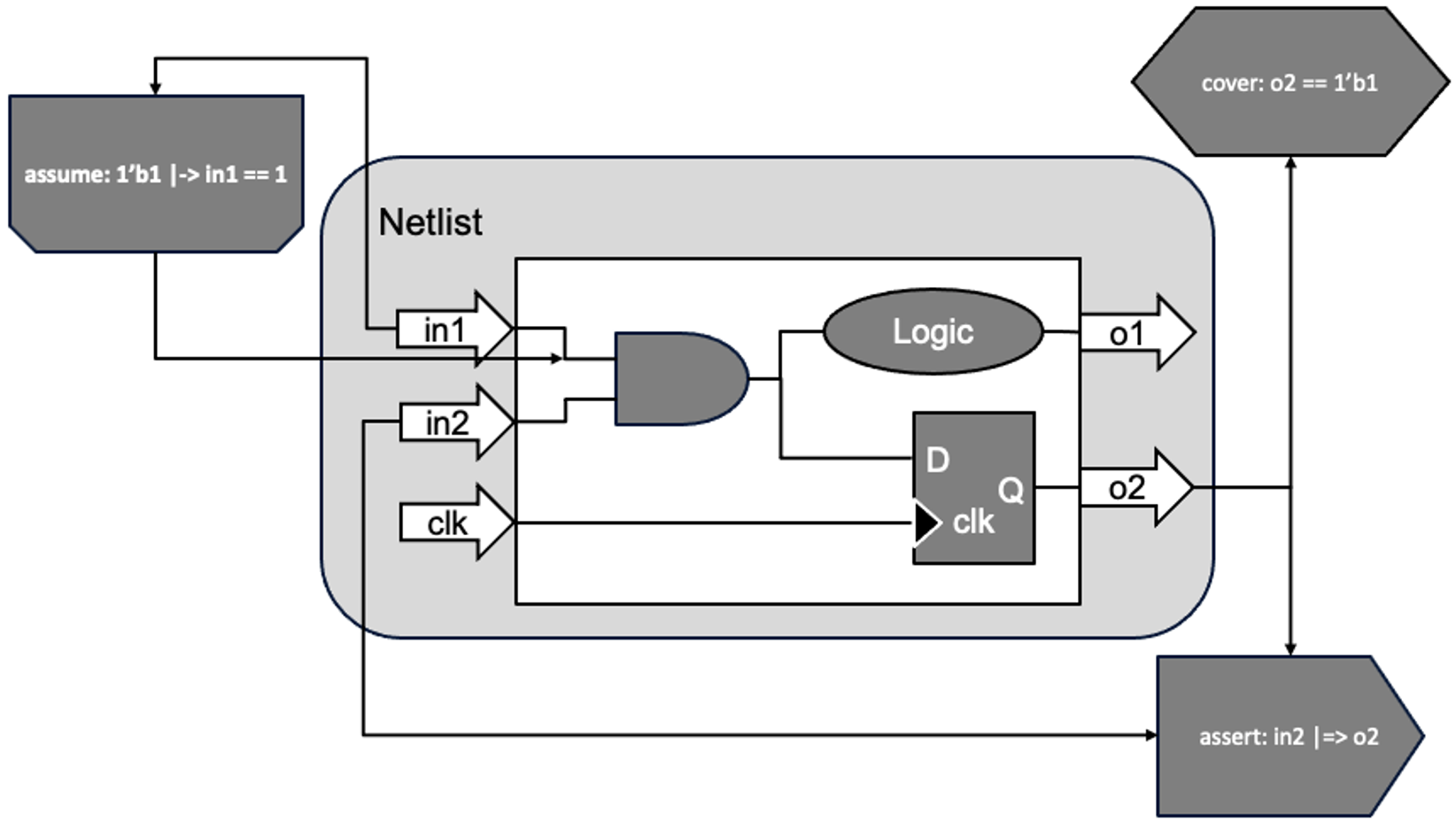 Properties are central to formal verification. They monitor signals in the netlist and determine if specific behaviors occur.