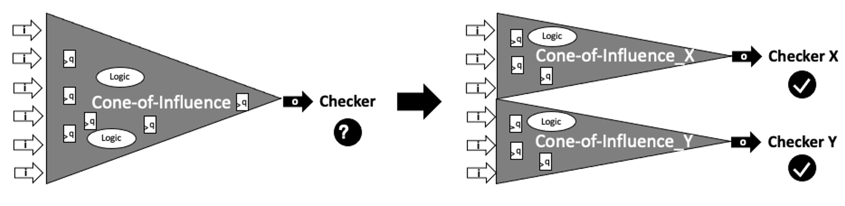 4. Property Simplification: Splitting complex assertions into smaller, more manageable pieces can reduce complexity. This divide-and-conquer approach ensures that each smaller COI is less complex, making verification more efficient.